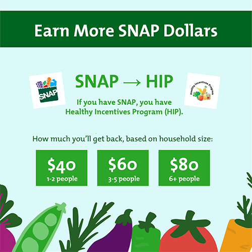 Did you know? If you receive SNAP benefits, you are automatically enrolled in the Healthy Incentives Program (HIP), which allows you to earn a dollar-for-dollar match on your EBT card when you buy fresh produce from a HIP-authorized farms and vendors like the ones at the Dorchester Winter Farmers Market!